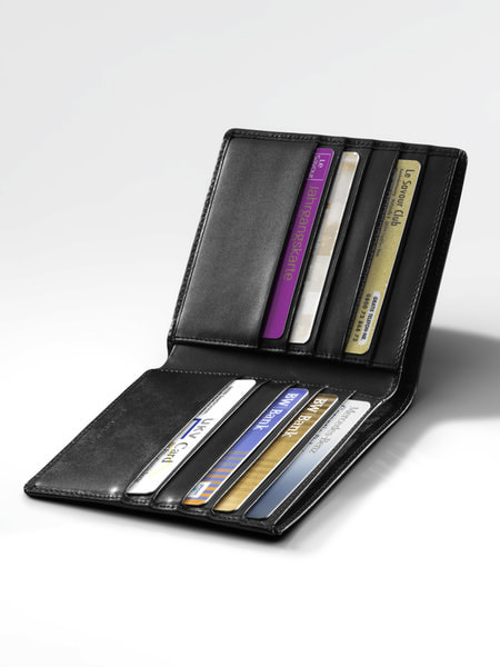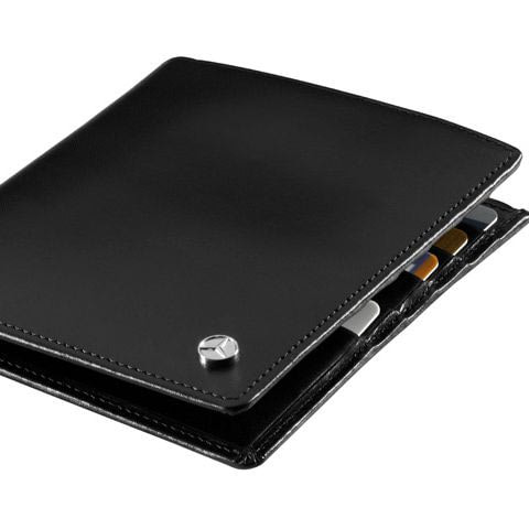 КРЕДИТНИЦА МУЖСКАЯ, BUSINESS Цвет: черный. Материал: итальянская кожа. Вертикальный формат. 10 отделений для кредитных карт, 2 прорезных кармана, 2 отделения для купюр. Заклепка в виде звезды «Мерседес-Бенц». Размер: 11 × 12 × 0,5 см. B6 695 1349