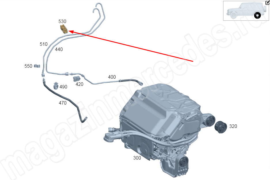 Крепеж шланга вентиляции электропривода на модульном брызговике Mercedes EQG