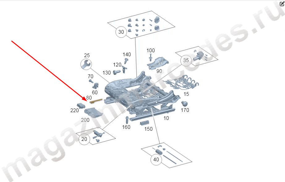 Элементы механизма регулировки переднего сиденья