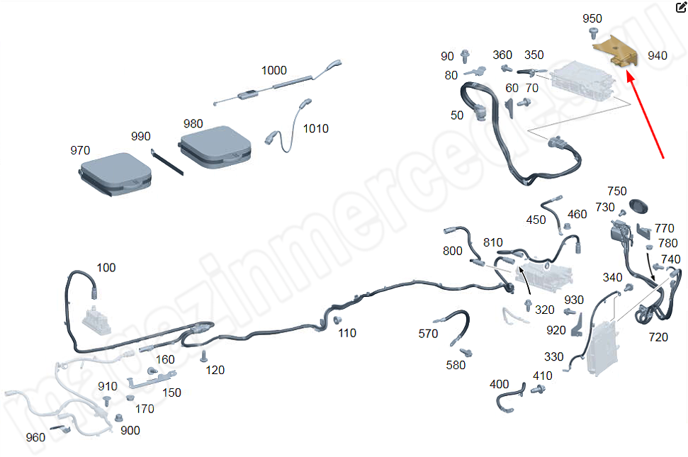 Крепление электропроводки системы энергоснабжения электропривода Mercedes AMG GT C192