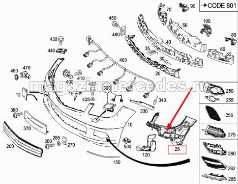 Кронштейн бампера переднего опорный левый Mercedes C Class W204