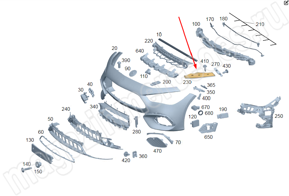 Кронштейн переднего бампера, энергопоглощающий демпфер передний верхний правый Mercedes СLE Class C236