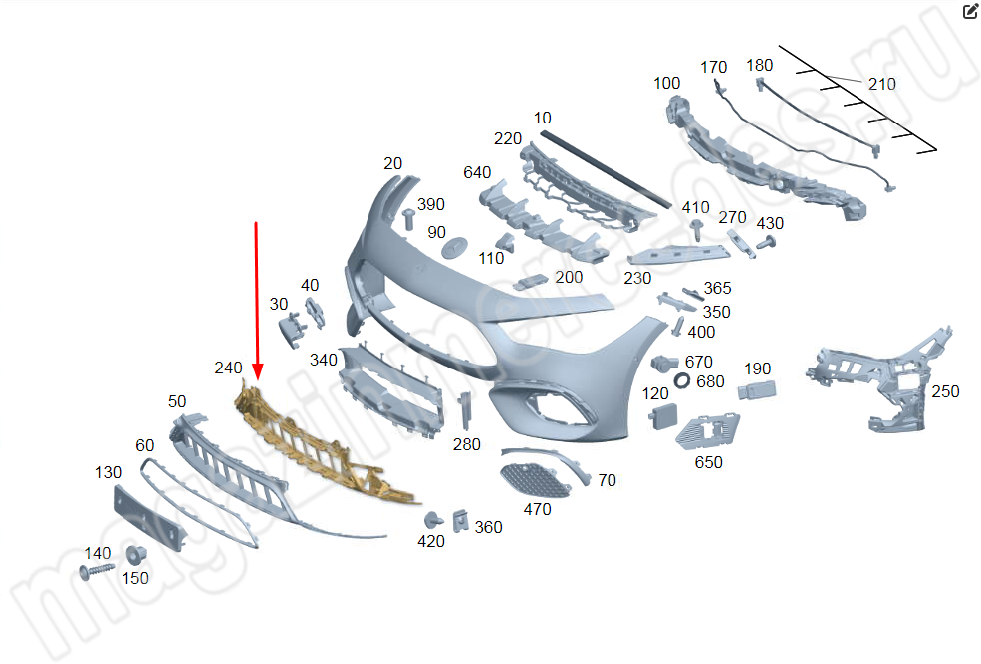 Кронштейн переднего бампера, энергопоглощающий демпфер спереди снизу Mercedes СLE Class C236