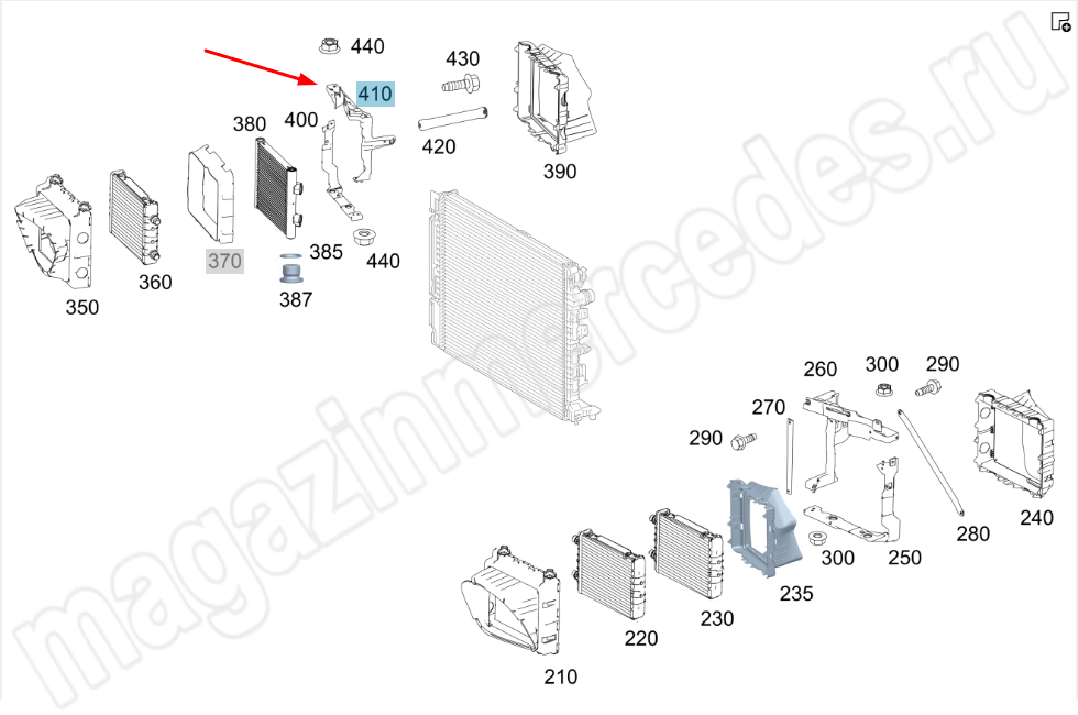 Кронштейн радиатора сверху справа Mercedes