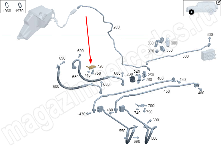 Кронштейн шланга высокого давления системы полуактивной стабилизации крена Mercedes G class W465