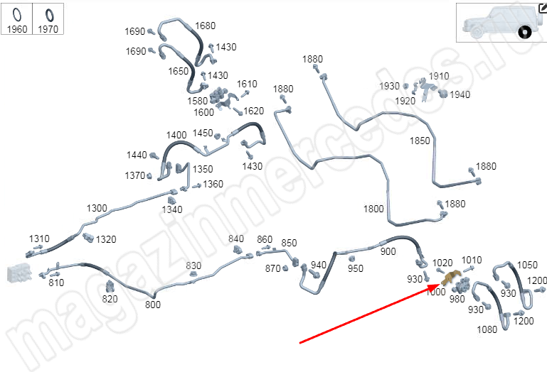 Кронштейн шланга высокого давления системы полуактивной стабилизации крена сзади слева Mercedes G class W465