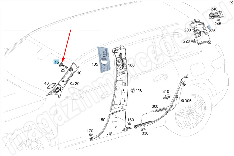 Крышка с надписью AIRBAG на облицовке передней левой стойки Mercedes GLB X247