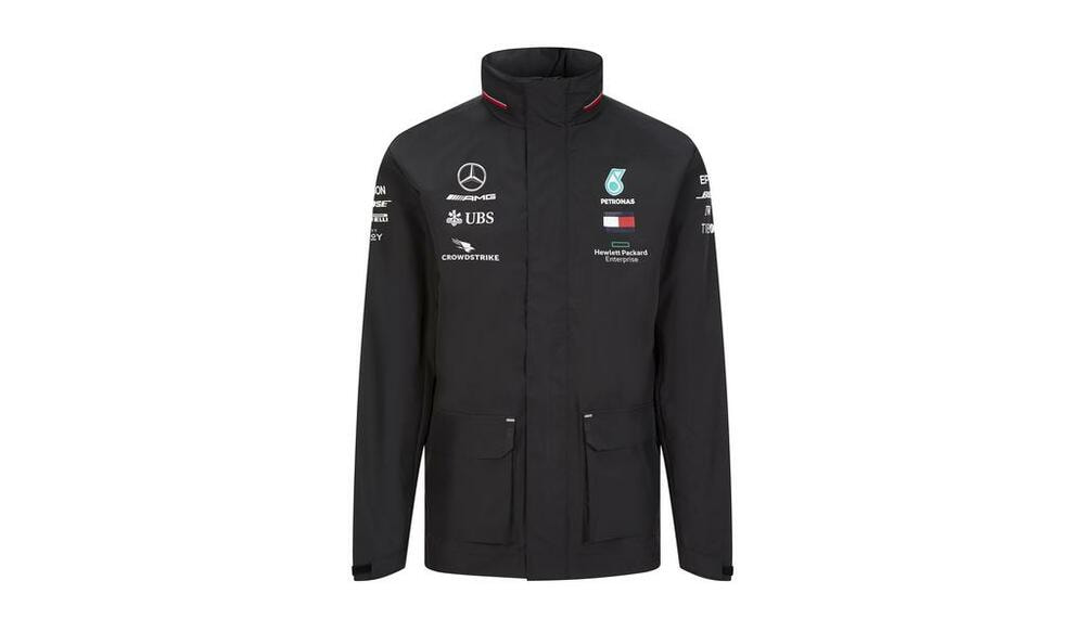 - Фирменная непромокаемая куртка команды MERCEDES AMG PETRONAS MOTORSPORT «Формулы-1» сезона 2020 года