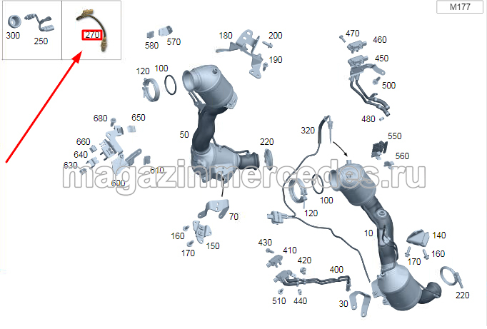 Лямбда-зонд справа после катализатора Mercedes SL Class R232
