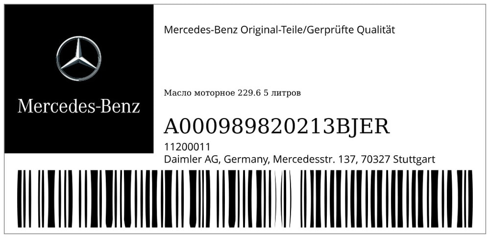 Масло моторное Mercedes C Class W206 MB 229.6 5л