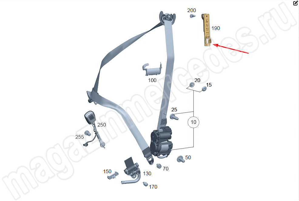 Механизм регулировки ремня безопасности по высоте Mercedes E Class W214