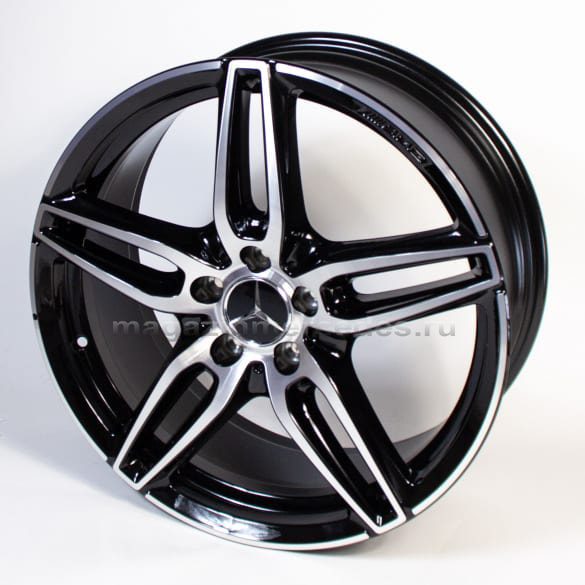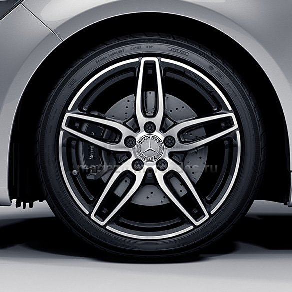 Колесный диск AMG с 5 двойными спицами. Параметры диска: 7,5 J x 18 ET 52 (18 дюймов). Цвет:Черный полированый. Материал: Алюминий. Рекомендуемая резина: 225/40 R18. Мост: Передний-Задний мост.