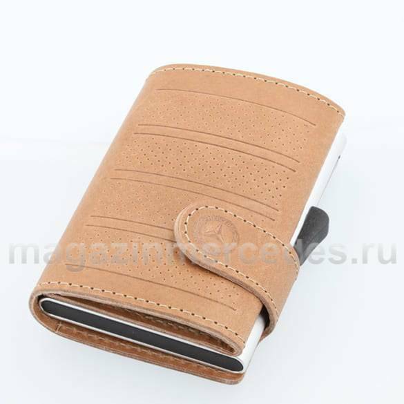 Минималистичный дизайн, максимальная защита: кожаный мини-кошелек коньячного цвета с алюминиевым держателем карт C-Secure на 4–7 карт, включая защиту RFID. Дополнительные отделения позволяют хранить банкноты, кредитные карты и чеки. Вдохновлен классическими автомобильными сиденьями Mercedes-Benz с лавровым узором внутри.