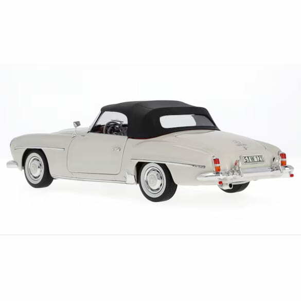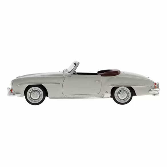 Модель автомобиля Mercedes-Benz 190 SL Roadster W 121 в масштабе 1:18 Точная модель Mercedes-Benz 190 SL Roadster W 121 (1954-1963) в масштабе 1:18 сочетает в себе классическую элегантность и внимание к деталям. Он изготовлен из высококачественного цинка, отлитого под давлением, с пластиковыми деталями и собран вручную из более чем 120 отдельных деталей. Двери, капот и крышка багажника являются подвижными и открывают вид на оригинальный интерьер.