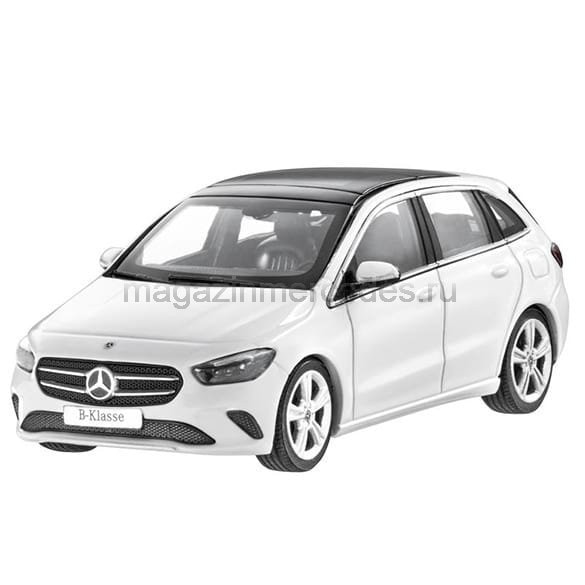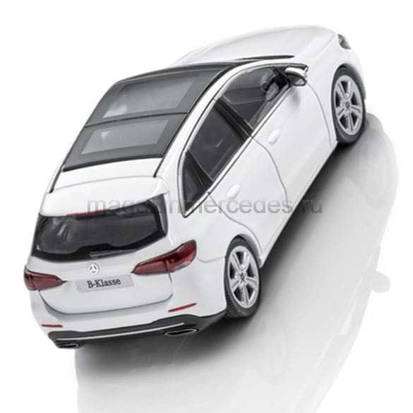 B-Class в кузове W247. Масштаб: 1:43. Материал: литой цинк с пластиковыми деталями. Собрана вручную из более чем 50 отдельных деталей. Длина: 10,5 см. Производитель: Herpa для «Мерседес-Бенц».