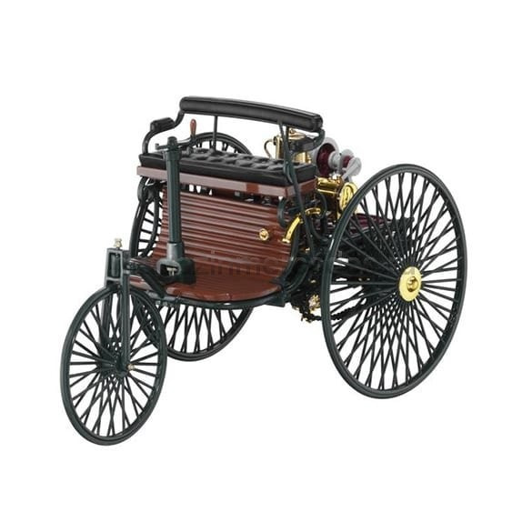 Главным достижением Карла Бенца является та последовательность, с которой он воплощал в жизнь свою мечту о «повозке без лошадей». У него рождается идея создания повозки с двигателем: он конструирует, строит, патентует, испытывает, выводит на рынок, налаживает серийное производство и совершенствует свое изобретение. В итоге изобретение приносит пользу, и «патент-моторваген» открывает новую эру индивидуальной мобильности. «Патент-моторваген» Бенца (1886). Масштаб: 1:18. Производитель: Norev. Цвет: зеленый