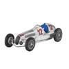 Масштабная модель гоночного болида Mercedes-Benz W 125. Под управлением пилота Рудольфа Караччиола машина под номером 12 победила в Гран-при Германии (1937 г.). Вес легендарного гоночного автомобиля составлял 750 кг.