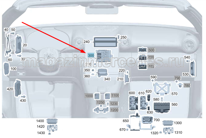 Модуль мультимедиа USB-разъем модуля подключения мультимедийных устройств в переднем вещевом отделении Mercedes SL Class R232