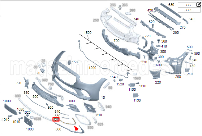 Молдинг бампера передний правый хром AMG