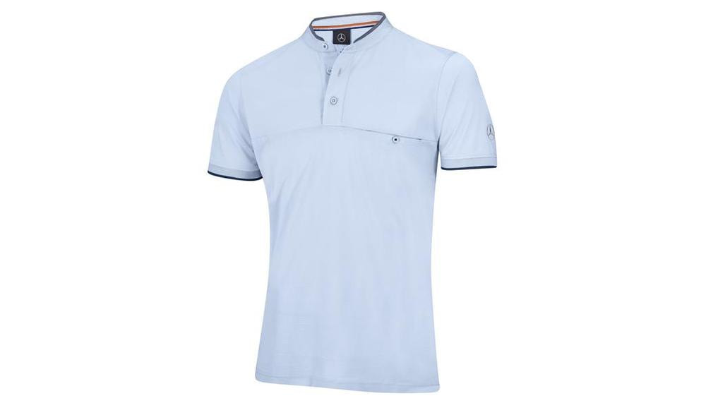 тон звезды Mercedes на левом рукаве, пуговицы с гравировкой надписи Mercedes-Benz и боковые разрезы, окаймленные с внутренней стороны трехцветной полосой, завершают удачный образ. Цвет: голубой. Материал: 100% хлопок. S - B66958865, M - B66958866, L - B66958867, XL - B66958868, XXL - B66958869
