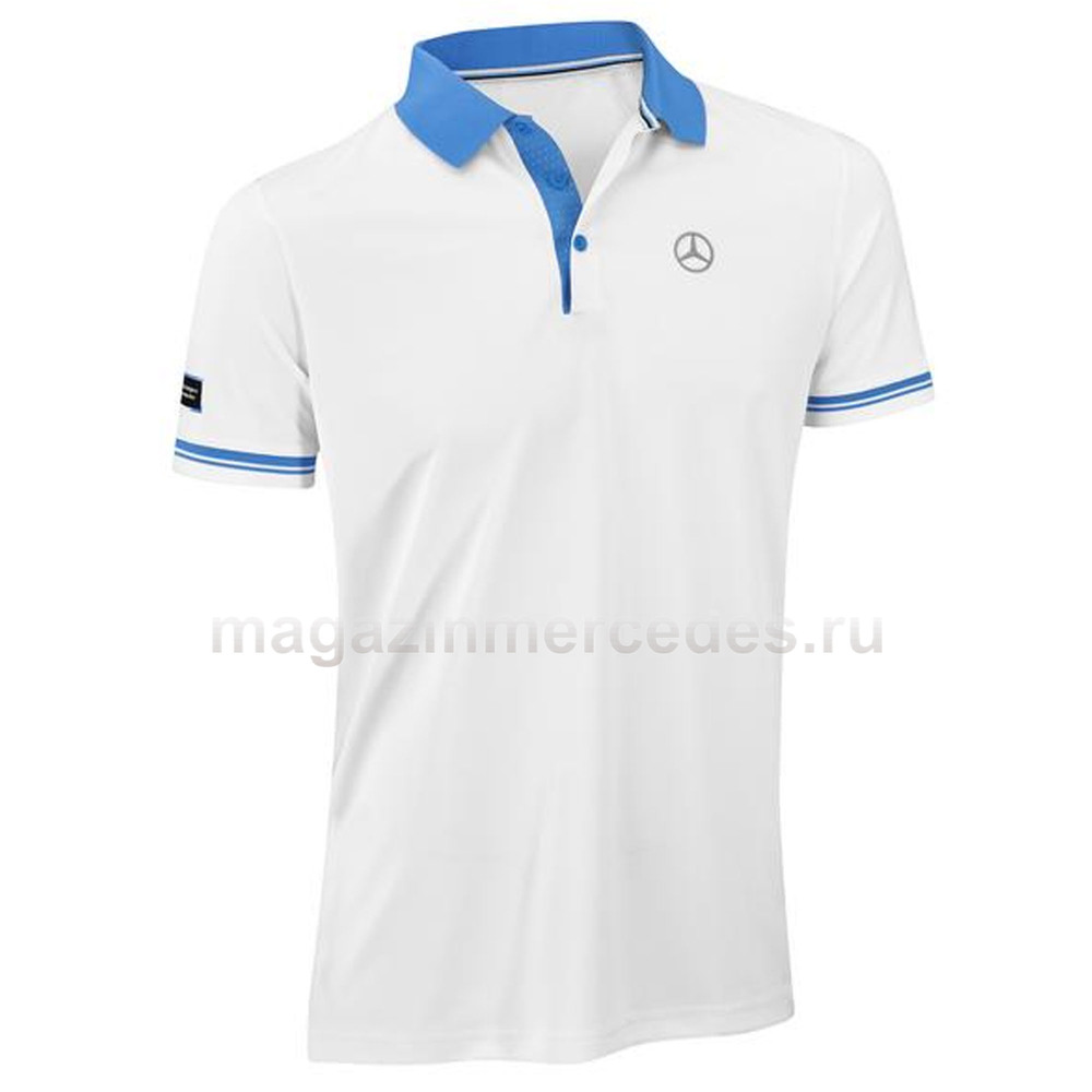 Оригинальная мужская рубашка-поло Mercedes-Benz белого и энергетического синего цветов пропускает воздух, регулирует влажность, быстро сохнет и оптимально подходит для ношения в повседневной жизни. Coolmax® - настоящая новинка среди полиэфирных волокон, поскольку благодаря увеличенной на 25 процентов поверхности влага из высококачественной пряжи, изготовленной из переработанных пластиковых бутылок, удаляется намного быстрее и качественнее. Кроме того, за одеждой Coolmax® чрезвычайно легко ухаживать. Задняя часть с ромбовидным трикотажным узором, основанным на конструкции сиденья Mercedes-Benz EQC, для дополнительной вентиляции делает комфорт мужской рубашки поло идеальным. Изюминкой рубашки является серебристо-серый принт в виде 3D-звезды на груди и светоотражающий логотип EQ на рукаве.
