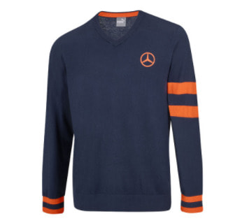 Вышитая звезда Mercedes на груди идеально завершает спортивно-элегантный дизайн свитера. Цвет: темно-синий / оранжевый. Материал: 71% хлопок / 25% нейлон / 4% кашемир. Производство компании PUMA для коллекции Mercedes-Benz. S - B66450472, M - B66450473, L - B66450474, XL - B66450475, XXL - B66450476