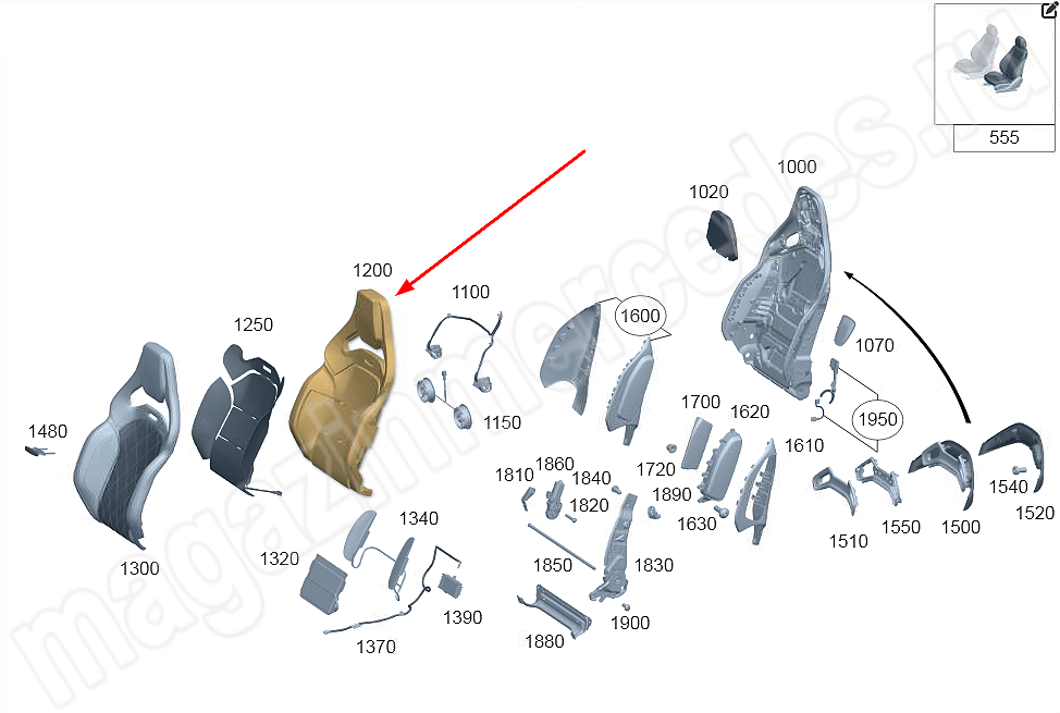 Мягкая подкладка спинки переднего левого сиденья Mercedes AMG GT C192