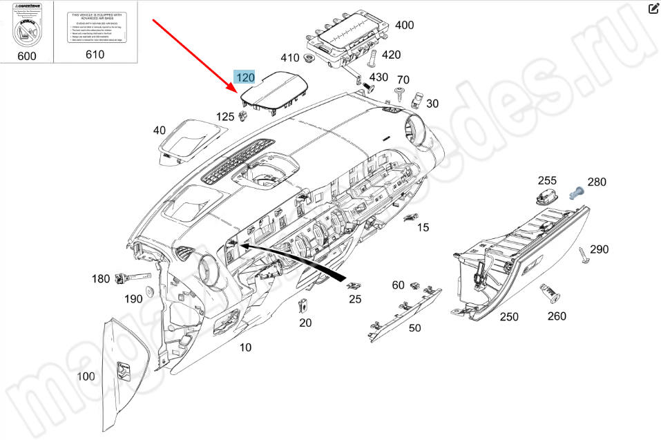 Накладка центральная панели приборов Mercedes EQB Class X243