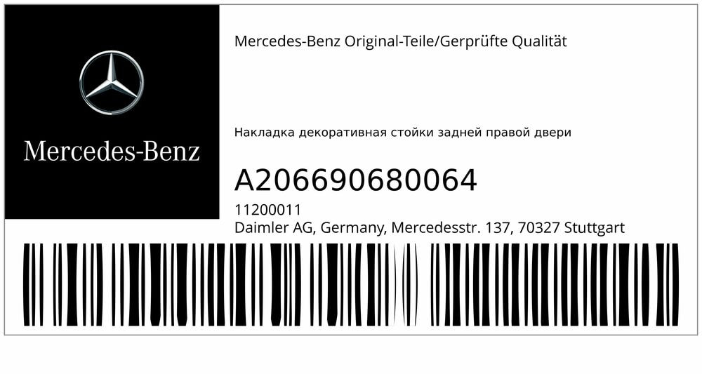 Накладка декоративная стойки задней правой двери Mercedes C Class W206
