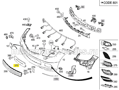 Накладка крепления номерного знака переднего бампера 63AMG Mercedes C Class W204