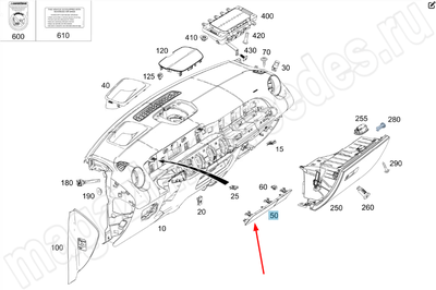 Накладка панели приборов посередине снизу Mercedes EQB Class X243