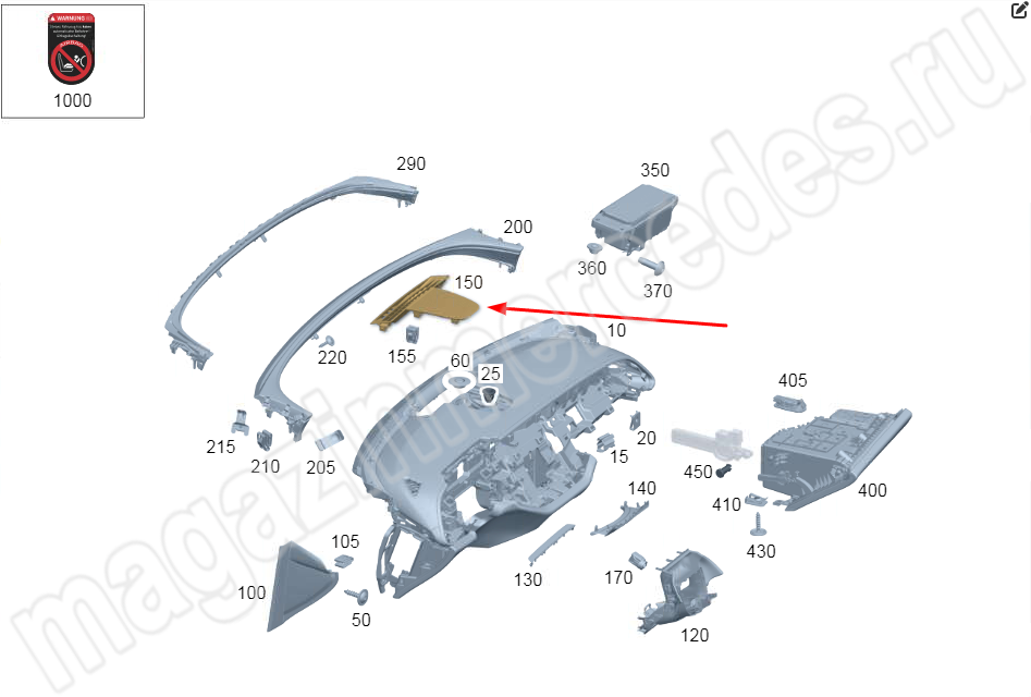 Накладка панели приборов посередине спереди Mercedes E Class W214