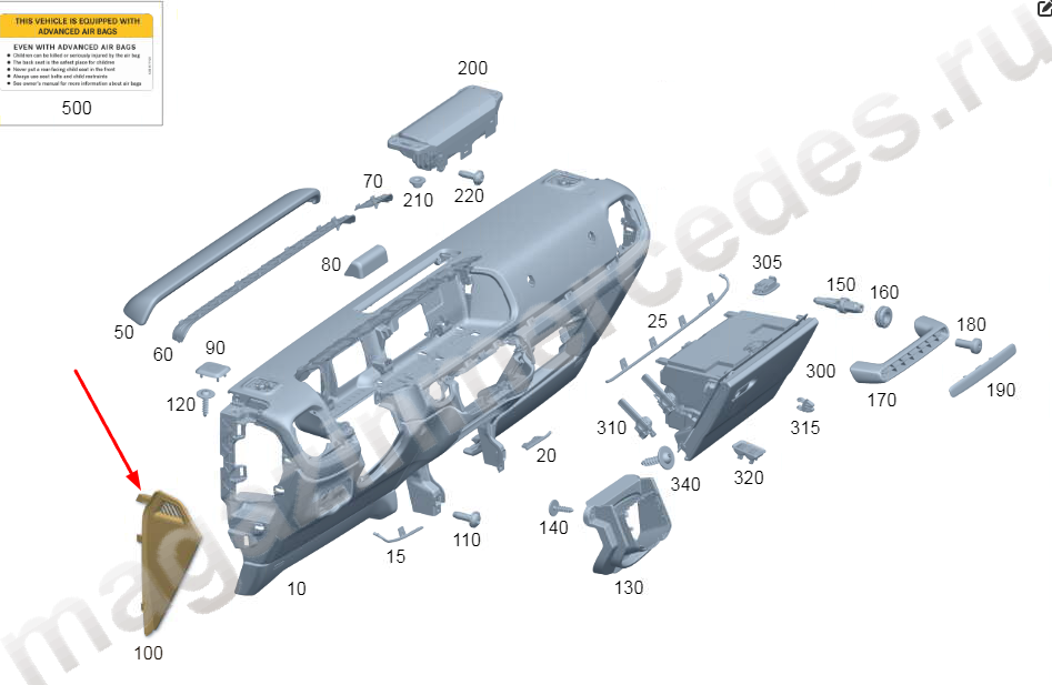 Накладка панели приборов слева Mercedes