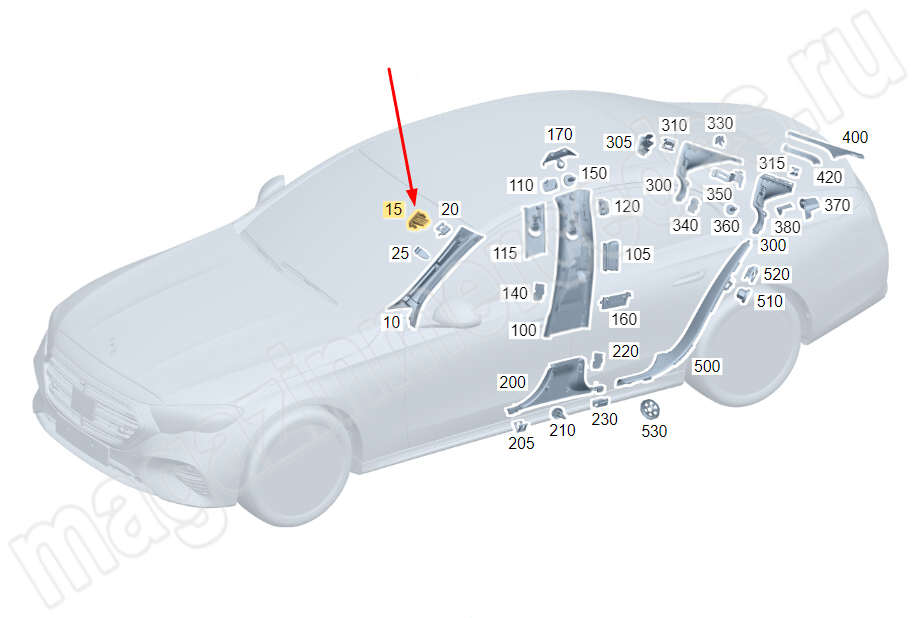 Накладка подушки безопасности на обшивке передней правой стойке Mercedes E Class W214
