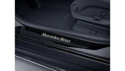 Хорошо выглядит и, в то же время, помогает лучше ориентироваться в темноте: черная сменная крышка с белой надписью «Mercedes-Benz» для накладки порога со светодиодной подсветкой. Сменная крышка убеждает не только простой установкой и точной посадкой, но также прочностью и долговечностью.