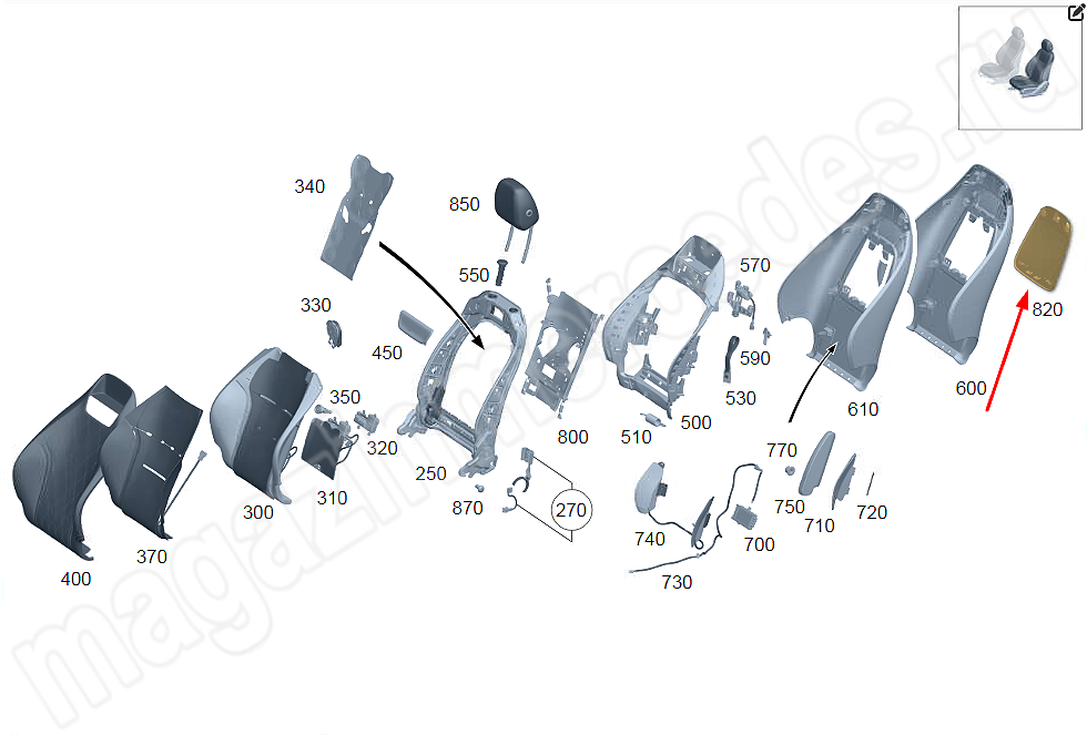 Накладка спинки переднего сиденья Mercedes Sl class R232