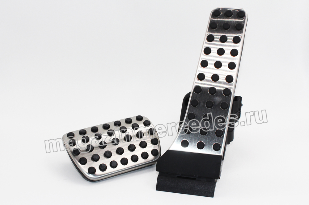 Для особой спортивности: высококачественные накладки на педали из зачищенной нержавеющей стали сделают салон Вашего автомобиля еще более спортивным и благородным. Эти оригинальные аксессуары оснащены противоскользящими резиновыми вставками и выполняют требования по безопасности «Мерседес-Бенц». Для автомобилей с автоматической и механической КПП.