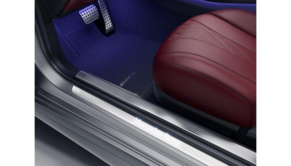 Для индивидуализации автомобиля мы предлагаем накладки порогов из нержавеющей стали с надписью «Mercedes-Benz» с подсветкой.
