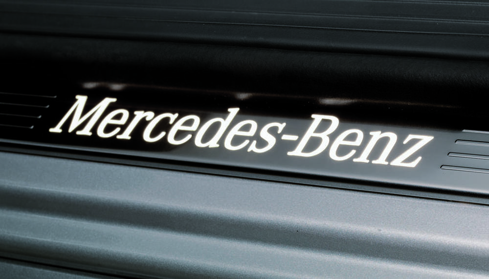 Для индивидуализации автомобиля мы предлагаем накладки порогов из нержавеющей стали с надписью «Mercedes-Benz» с подсветкой.