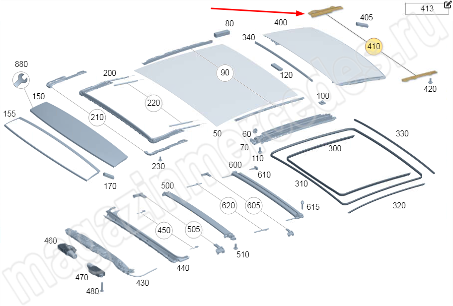 Направляющая механизма панорамной крыши сзади слева и справа Mercedes E Class W214