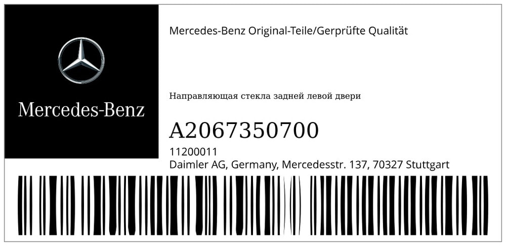 Направляющая стекла задней левой двери Mercedes C Class W206