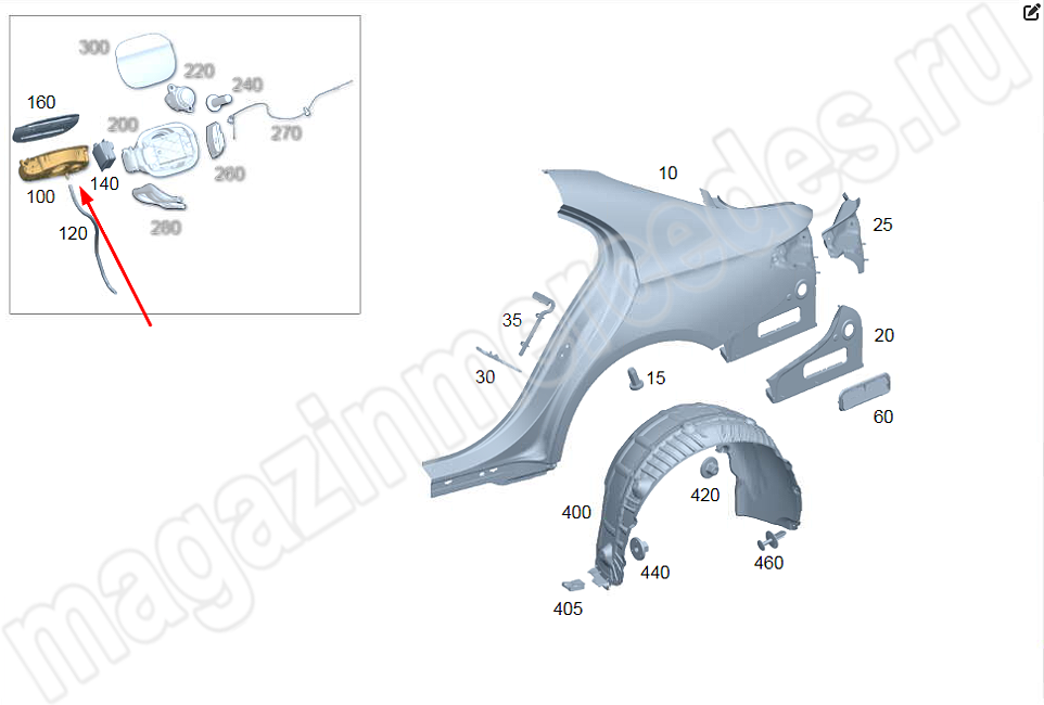 Ниша заливной горловины топливного бака Mercedes E Class W214