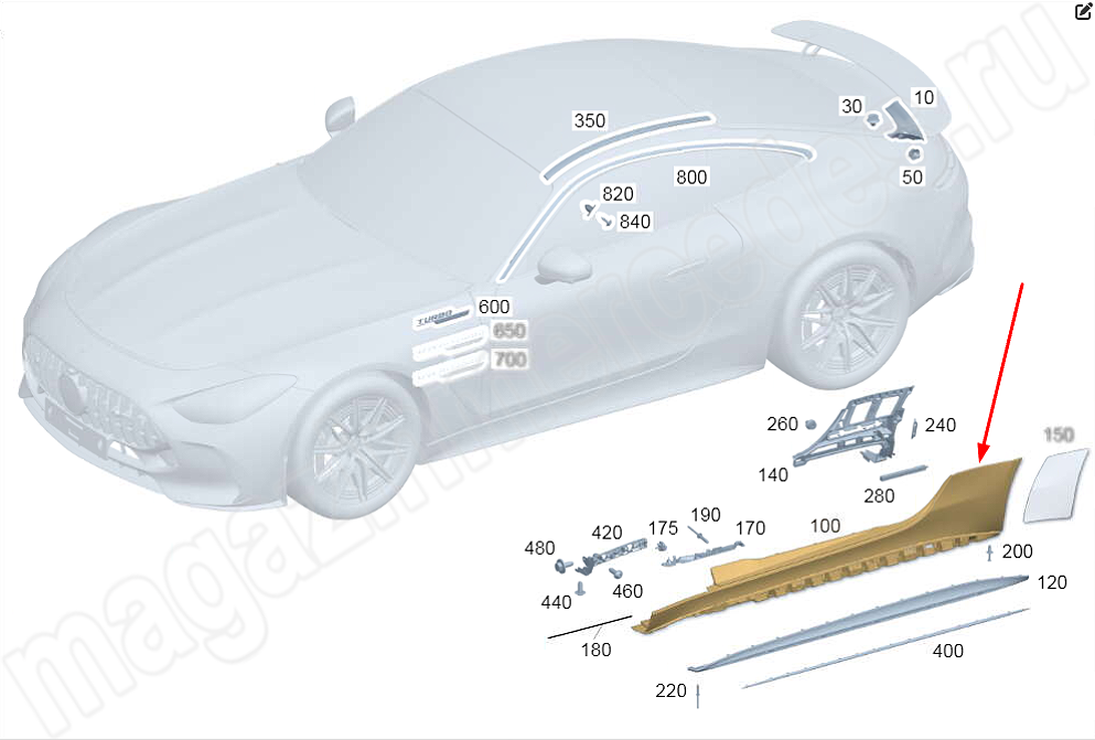 Облицовка порога снаружи слева Mercedes AMG GT C192