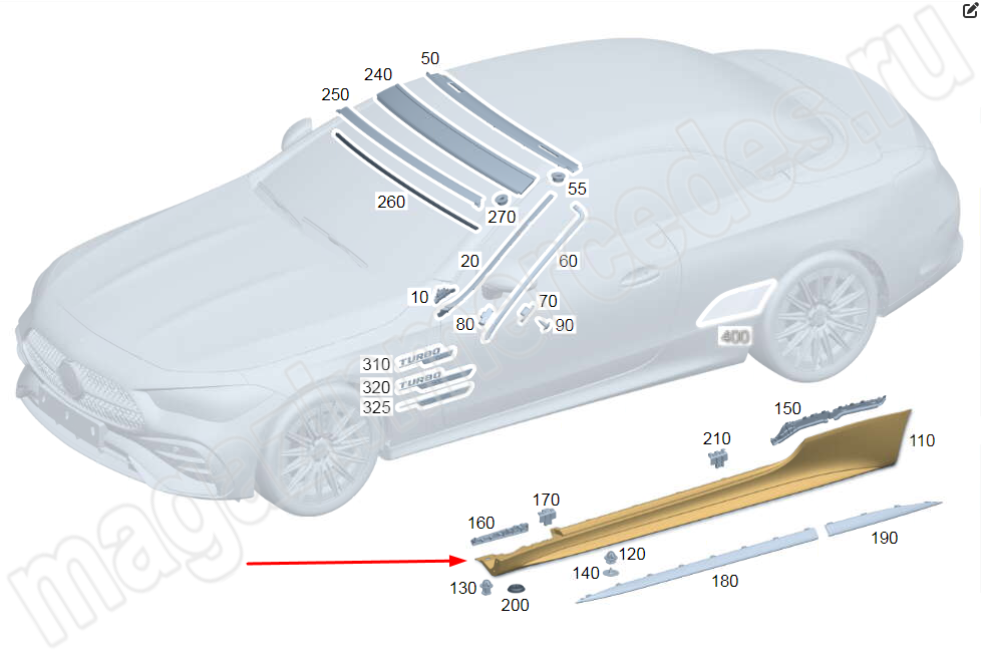 Облицовка порога снаружи справа Mercedes CLE Class A236