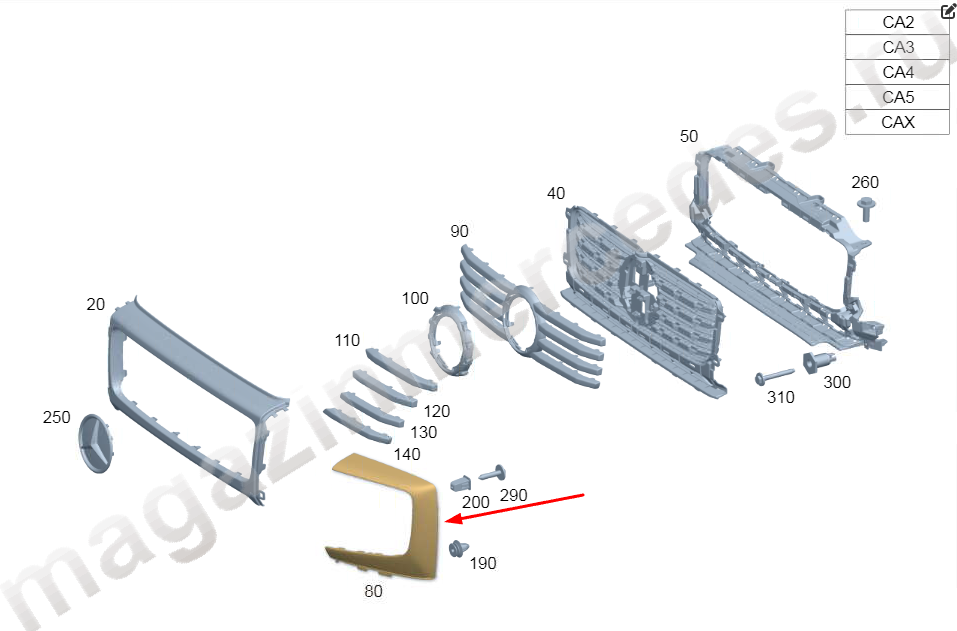 Облицовка радиатора слева Mercedes