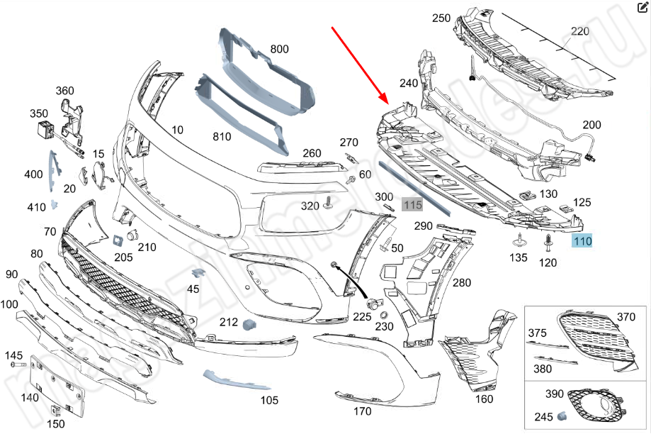 Опора переднего бампера нижняя Mercedes