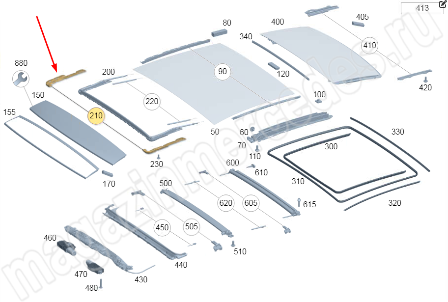 Опора ветроотражателя слева и справа Mercedes E Class W214