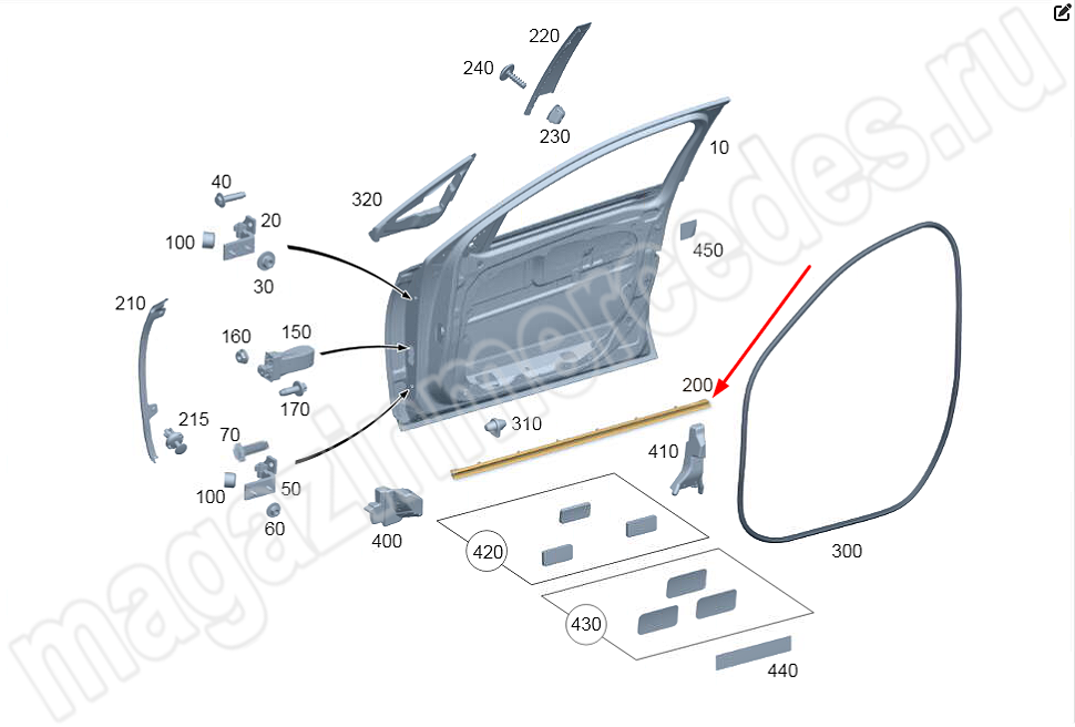 Отводная планка передней двери снизу справа Mercedes E Class W214