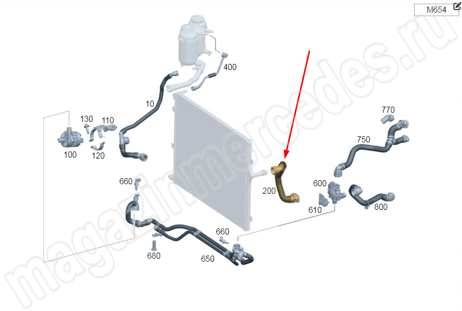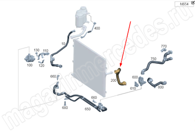 Патрубок низкотемпературного контура от радиатора низкотемпературного контура к разъему Mercedes E Class W214