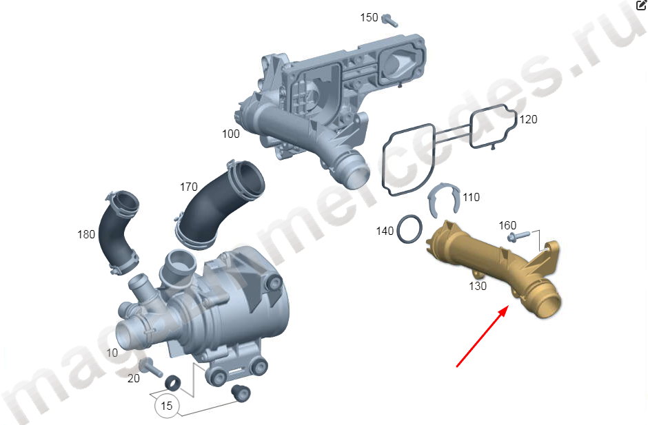 Патрубок термостата охлаждения двигателя Mercedes G class W465